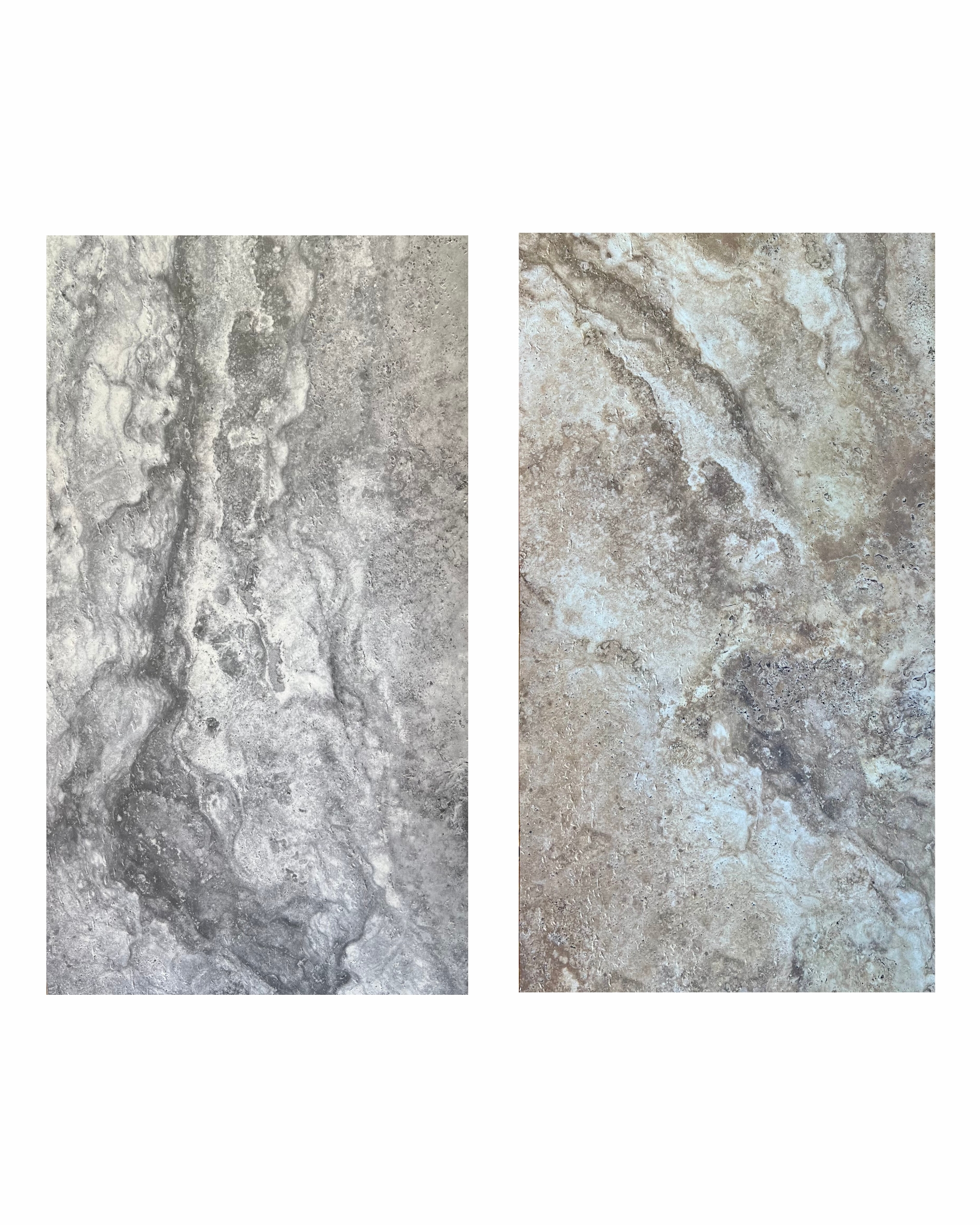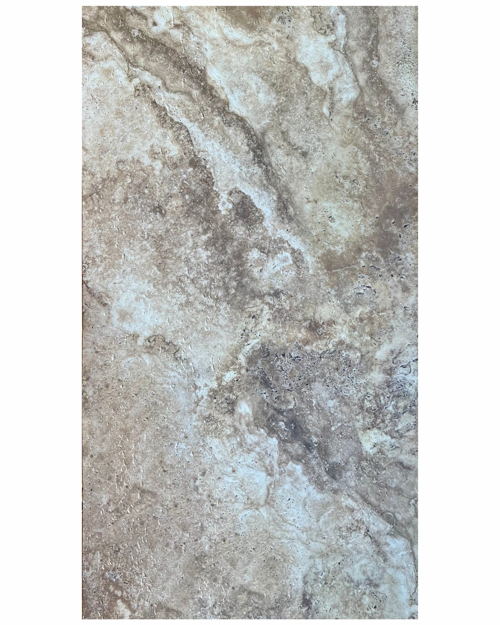 ‘Dolomotic Travertine’ Disponible chez Renovalis en 120*60 cm, couleur grise ou argile claire